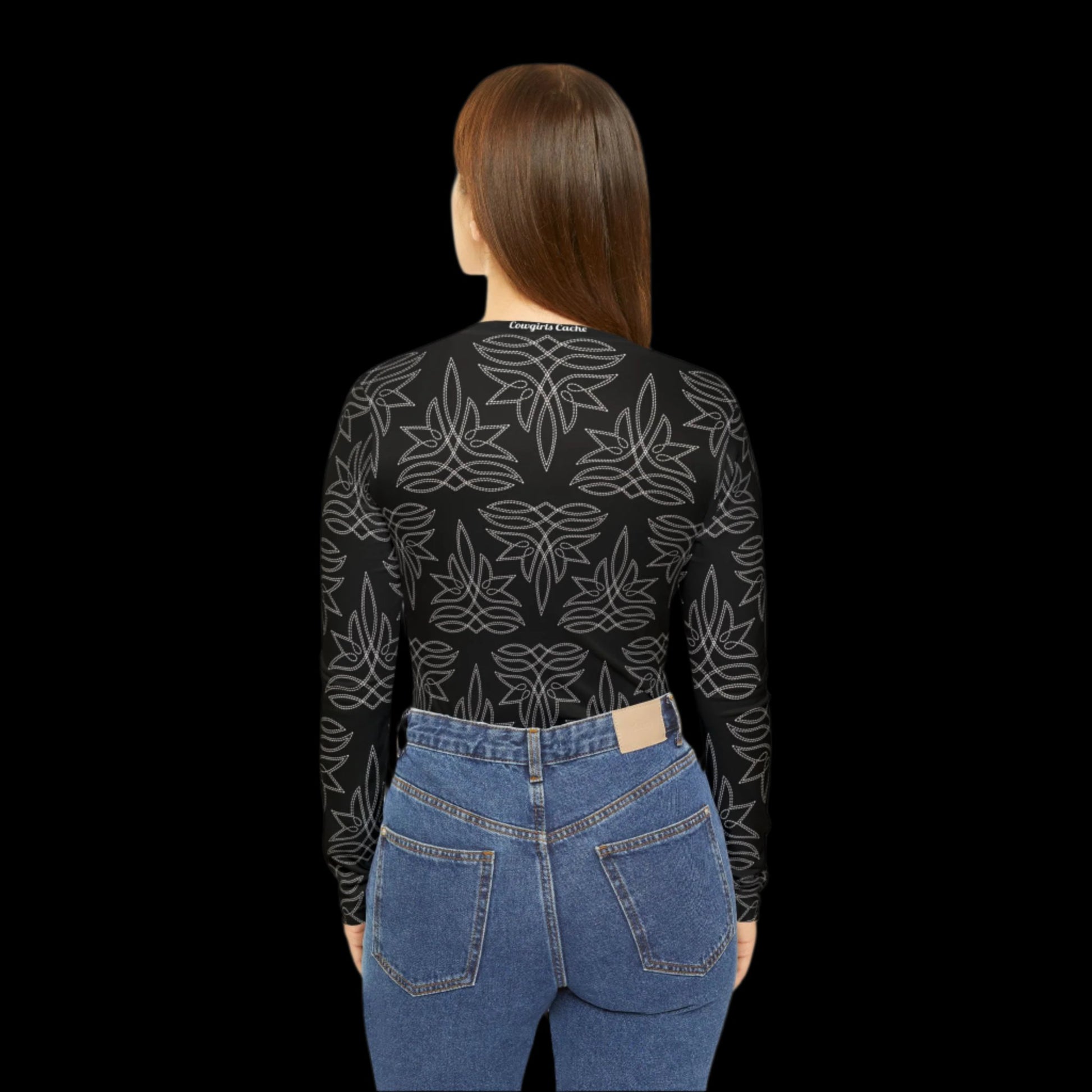 Boot Stitch, Black Women's Long Sleeve V-neck Shirt (AOP)