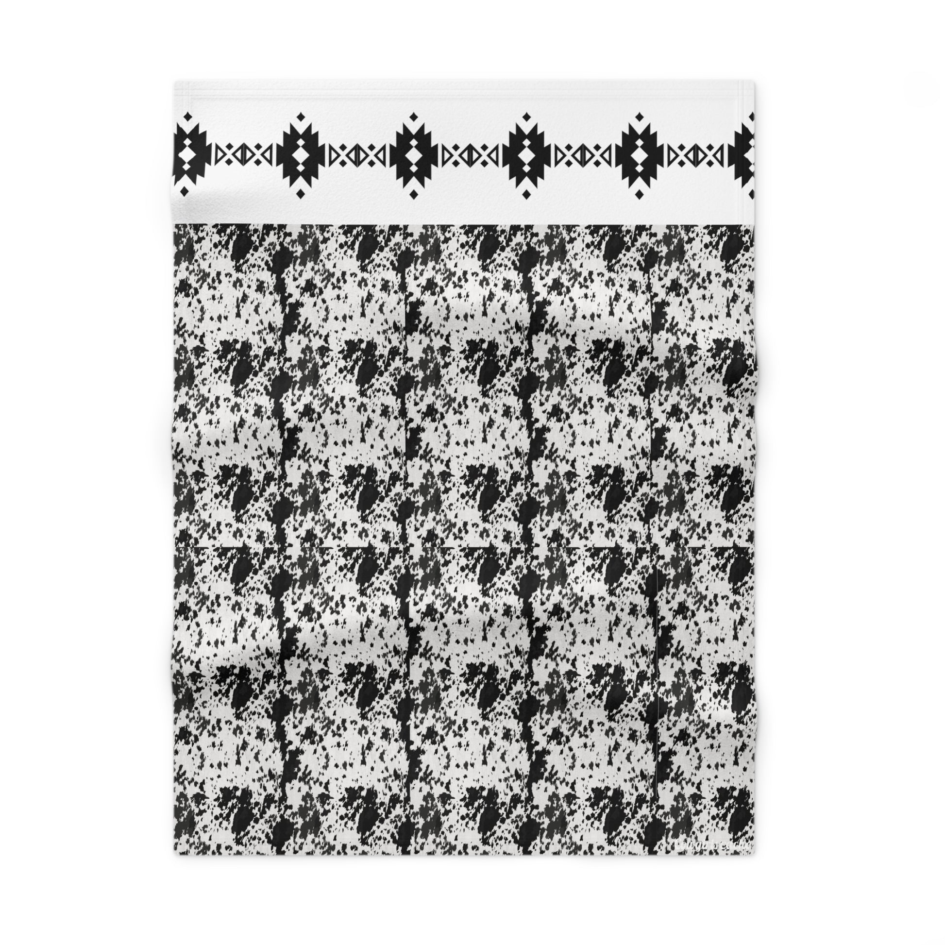 Fleece is king when it comes to fluffy softness. As such, thiscute cowhide print fleece baby blanket is a cuddle necessity. 30” by 40”, this 100% polyester rectangle supports printing on one side. These items are preconstructed before printing, so exact symmetry is not guaranteed. Due to the microfiber construction, small colored dots may pop up. A cold wash cycle and a tumble dry, however, should reduce this possibility.