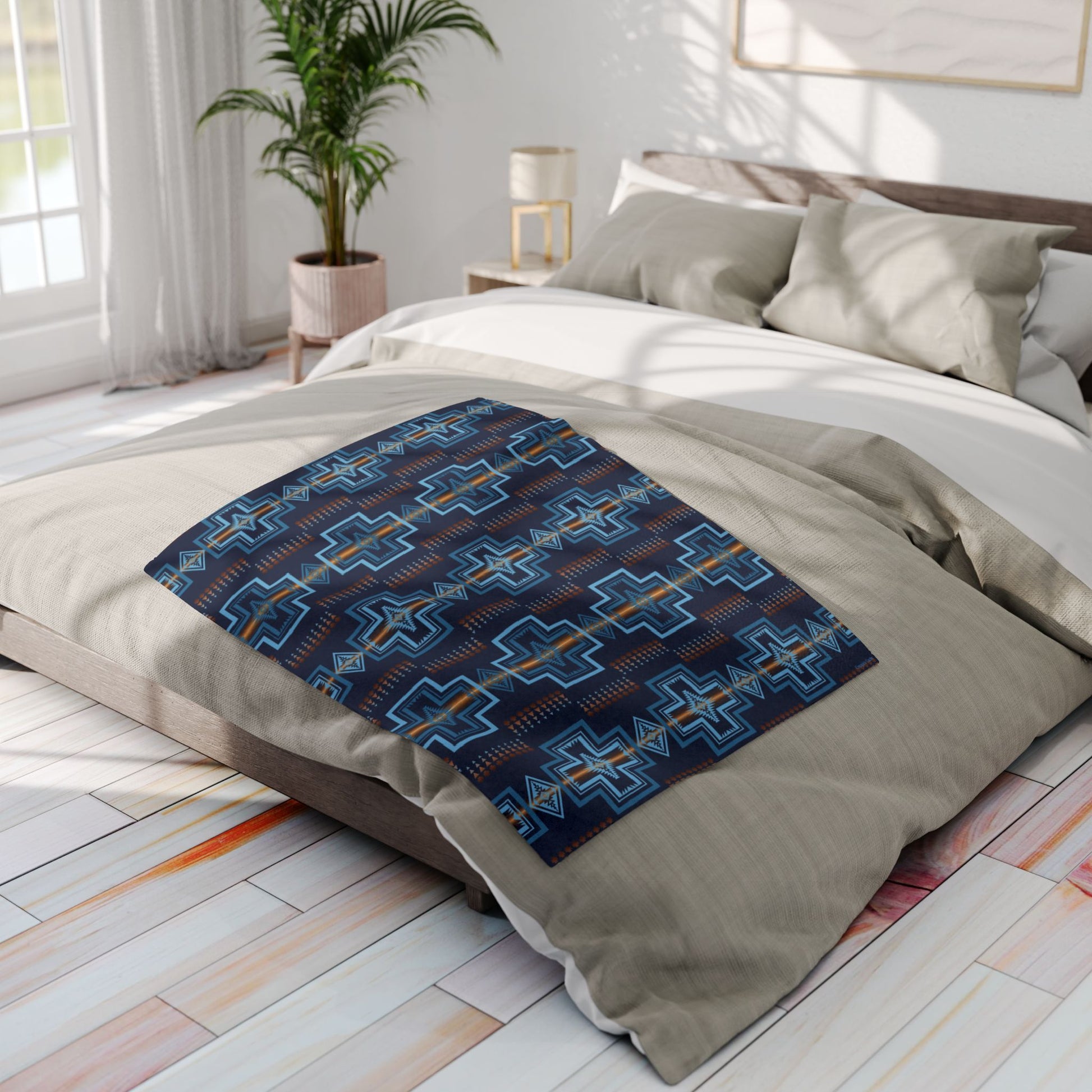 Stay cozy with this Native American print Blanket made of 100% polyester fleece. The thick and soft material is perfect for snuggling up during cold winter nights or adding a touch of warmth to your home décor. This vibrant blanket is relevant for anyone who loves Native American culture and design, perfect for gifting during the holiday season or for adding a cozy touch to any room.