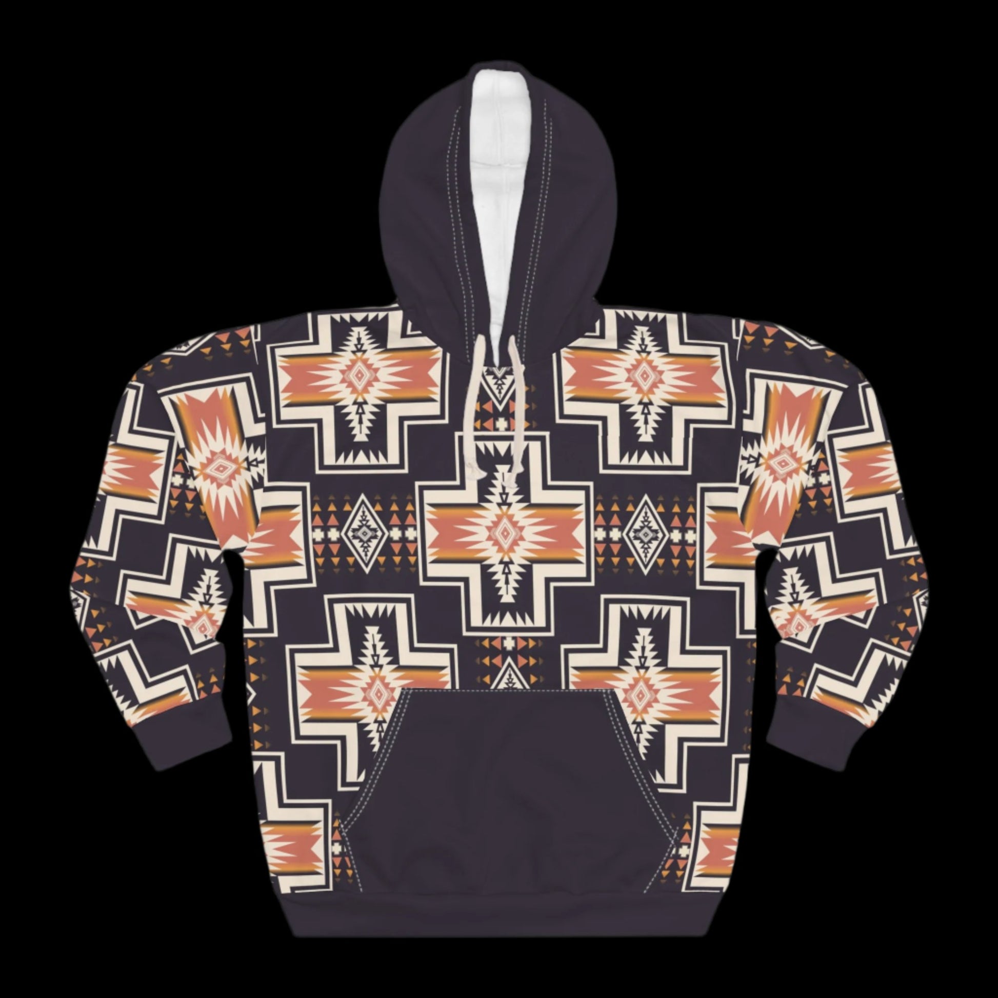 This Pullover Hoodie is made for warmth and comfort. Made to be easily customizable without white lines at the seams, this all-over print pullover hoodie is waiting for you to add a great design and it instantly becomes fashionable. It features a large front pocket, a hood with a drawstring, and is custom cut and sewn.