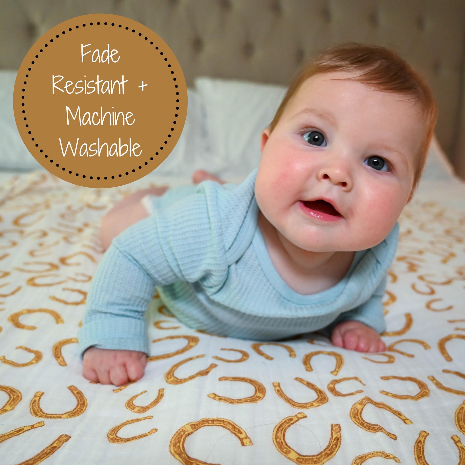 LollyBanks Swaddle Blanket | 100% Muslin Cotton | Gender Neutral Newborn and Baby Nursery Essentials for Girls and Boys, Registry | Cowboy Boot and Horseshoe 2 Pack