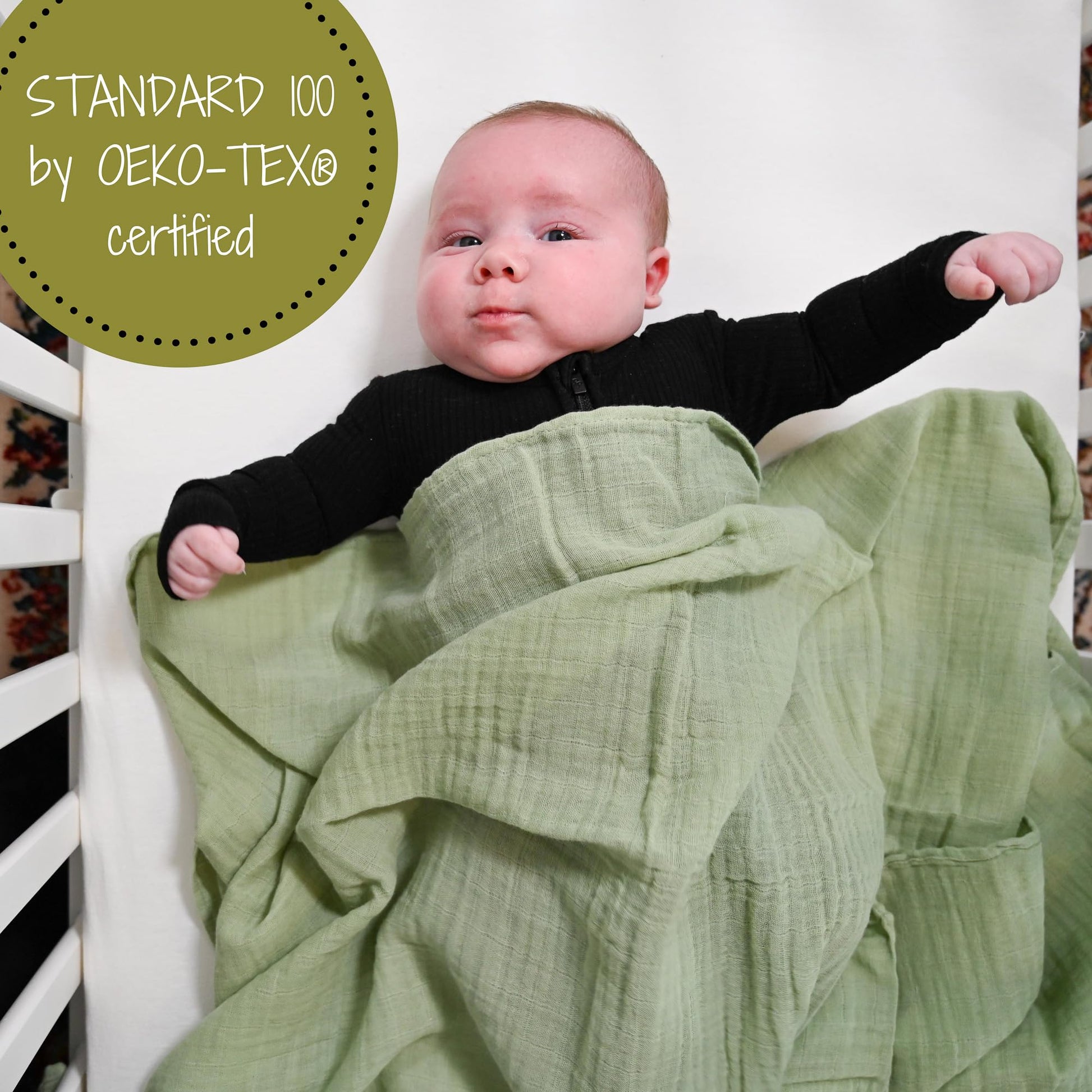- OEKO-TEX CERTIFIED AND EASILY CARE- Our muslin swaddle blankets meet the requirements of Standard 100 by OEKO-TEX. Machine washable, tumble dry at low heat, blankets become softer with each wash.