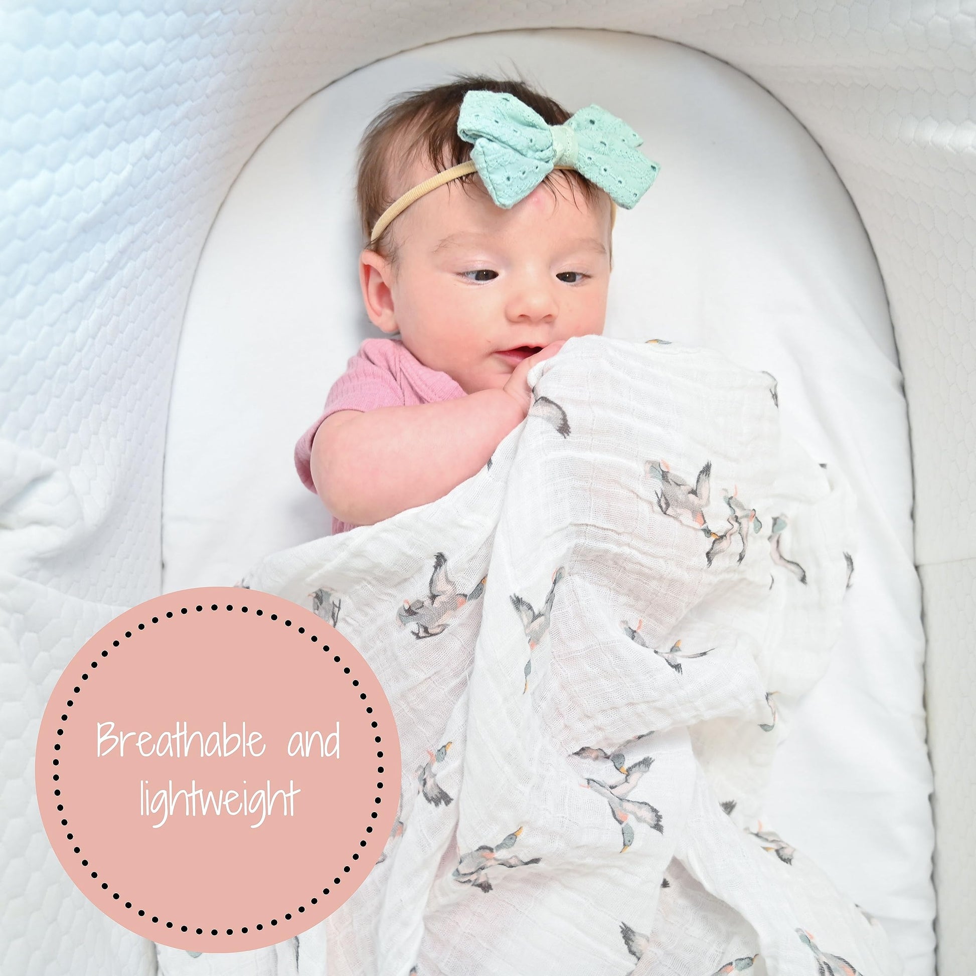 - SOFT AND COZY BLANKET - Wrap your baby in our extra soft 100% cotton muslin swaddle blanket to make your baby feel safe and secure. Each 47x47 blanket provides enough space to snuggly and securely wrap your newborn.