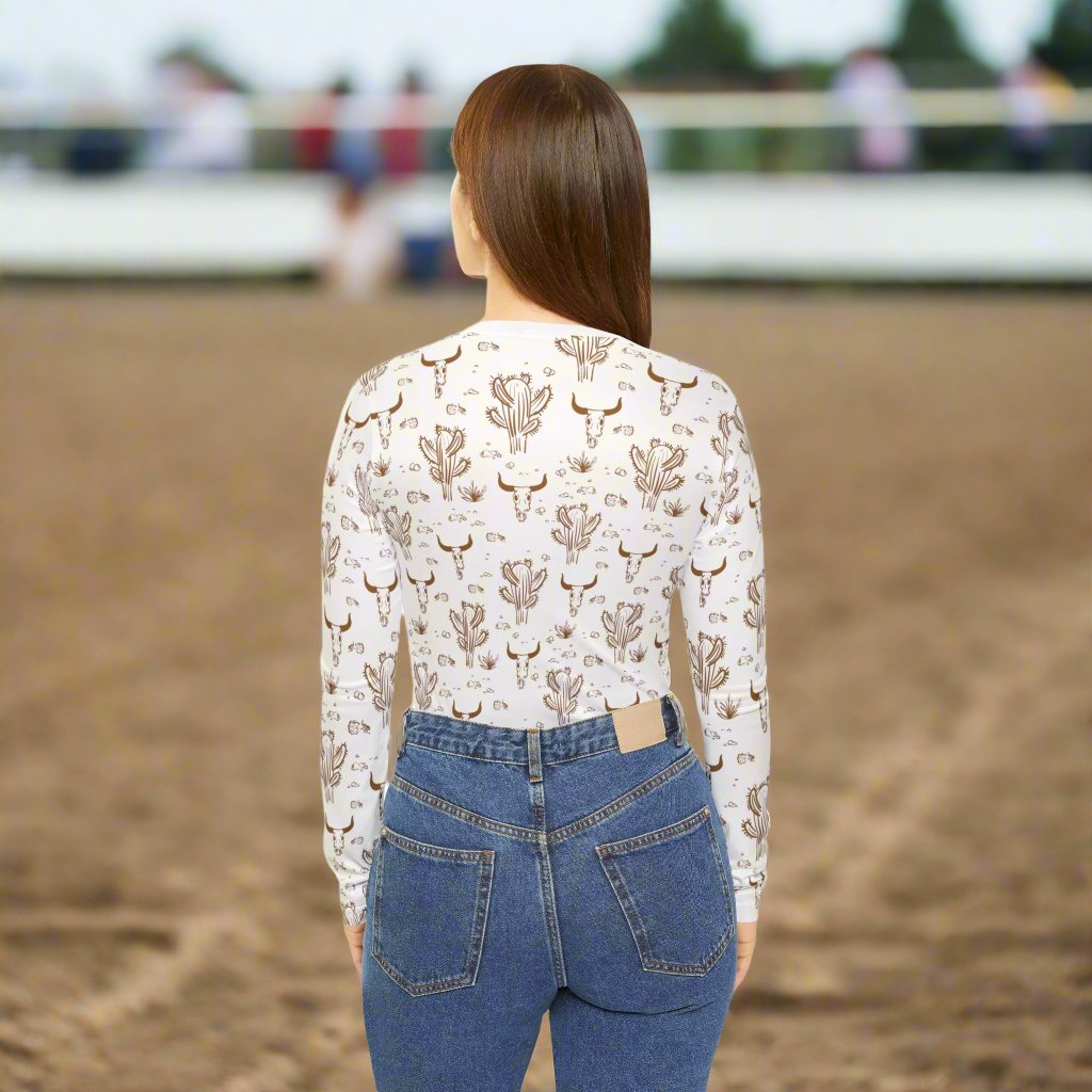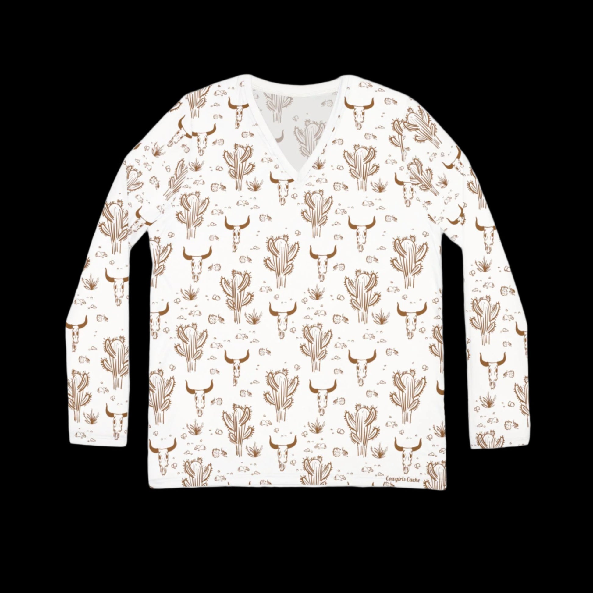 Longhorn Skull, Women's Long Sleeve V-neck Shirt (AOP)