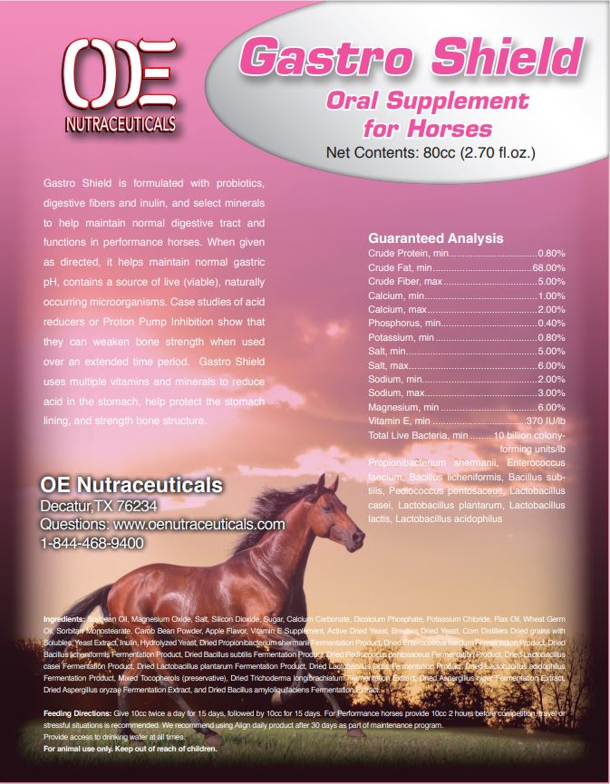 EQ-Gastro is formulated with probiotics, digestive fibers and inulin, and select minerals to help maintain normal digestive tract and functions in performance horses. When given as directed, it helps maintain normal gastric pH, contains a source of live (viable), naturally occurring microorganisms. Case studies of acid reducers or Proton Pump Inhibition show that they can weaken bone strength when used over an extended time period. EQ-Gastro uses multiple vitamins and minerals to reduce acid in the stomach, help protect the stomach lining, and strength bone structure.
